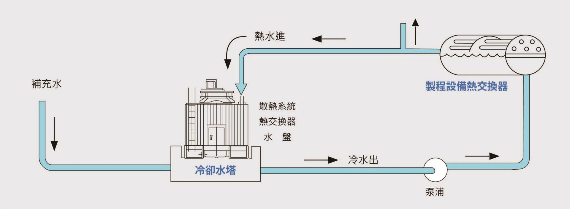 5. 热交换完的冷水再回到泵浦( 系统内因热交换损失的水会持续补充)